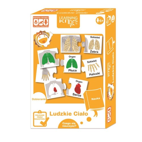 Zidentyfikuj i nazwij części ciała ludzkiego i szkieletu. Poprzez dopasowywanie nazw i rysunków dzieci mogą nauczyć się nie tylko rozpoznawania, ale również położenia narządów w organizmie. Wiek: 6+ Zawartość opakowania: Puzzle 40 elementów