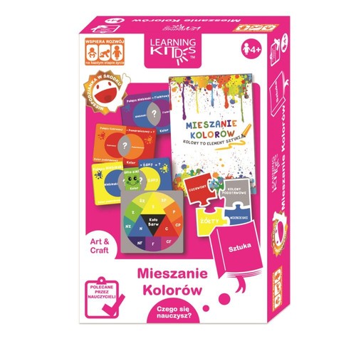 Kolory to element sztuki. Poznaj teorię kolorów, na podstawie koła barw . Dowiedz się czym są kolory podstawowe, drugorzędne i trzeciorzędne. Kieruj się kołem barw, aby nauczyć się jak mieszać kolory zanim zaczniesz zabawę z kartami i puzzlami. Ostrzeżenie: Nieodpowiednie dla dzieci w wieku poniżej 3 lat. Wiek: 4+ Zawartość opakowania: Instrukcja zawierająca informację na temat teorii kolorów Koło barw 2 puzzle 5 kart