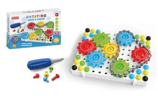 Układanka GEAR DIY, rozm opak: 23x15x5cm Zestaw, który gwarantuje kreatywną zabawę dla małych konstruktorów, miłośników tworzenia i małych mechaników. Zestaw składa się z elementów, które można dowolnie i wielokrotnie ze sobą łączyć, przykręcać, rozkręcać przy pomocy dołączonego do zestawu śrubokręta