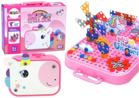 Układanka Zestaw DIY Walizka Jednorożec Klocki Różowe 227 ele. Zabawka walizka stolik DIY do skręcania z motywem jednorożca to magiczna przygoda dla każdej małej marzycielki! Głównym elementem tego zestawu jest urocza walizka, która nie tylko pełni funkcję przechowywania, ale również rozkłada się, tworząc stabilny stolik do zabawy. W zestawie znajdziesz klucz płasko-oczkowy, śrubokręt oraz szeroki wybór śrubek i nakrętek, które umożliwiają łatwe montowanie i demontowanie elementów. To doskonała okazja do rozwijania umiejętności manualnych i logicznego myślenia podczas konstruowania własnych budowli. Dodatkowo, zestaw zawiera figury geometryczne w różnych kształtach, takich jak koła, kwadraty, trójkąty itp. Dzięki nim dzieci mogą tworzyć nie tylko budynki, ale również fantastyczne obiekty przestrzenne, stymulując swoją kreatywność i wyobraźnię. Stolik DIY ma kolor różowy, co nadaje mu magicznego wyglądu pasującego do motywu jednorożca, a figury geometryczne i śrubki występują w kolorach pomarańczowym, szarym, niebieskim i czerwonym, dodając różnorodności i atrakcyjności do zabawy. Do walizki jest również dołączony zestaw uroczych figurek jednorożców, które dodają dodatkowej magii i inspirują dzieci do tworzenia magicznych opowieści podczas zabawy. W rezultacie, ta zabawka nie tylko dostarcza godzin kreatywnej zabawy, ale także rozwija umiejętności manualne, logiczne myślenie i wyobraźnię, oferując jednocześnie fascynujące i edukacyjne doświadczenia dla małych miłośników jednorożców i marzycieli. Wymiary walizki: 23 cm x 18 cm x 7 cm (złożona) 38 cm x 23 cm x 3,5 cm (rozłożona) Wymiary opakowania: 24 cm x 8 cm x 19 cm Posiada certyfikat CE, ponadto jest zgodny z normą EN71. Przeznaczone dla dzieci powyżej 3 roku życia.