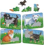 Układanka z grubej tektury ze specjalnymi kształtami. Elementy układanek mają kształty pasujące do tematu obrazka.