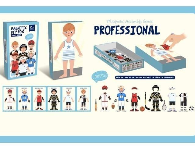 Układanka magnetyczna - sportowiec, zawiera 40 elementów. Układanka pomaga małemu dziecku poznać różne dyscypliny sportu.