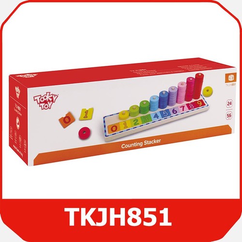 Układanka to drewniany sorter do rozpoznawania kolorów i nauki liczenia. Zabawa polega na dopasowaniu ilości nałożonych kółek do cyferek namalowanych na podstawce. Zadanie ułatwiają identyczne kolory kółek i cyferek. Kolorowe kółeczka do nakładania pomagają w łatwy sposób opanować podstawy liczenia. Podczas zabawy dziecko ćwiczy zdolności manualne, rozwija umiejętności logicznego myślenia, koordynację ręka – oko, uczy rozpoznawania kolorów oraz pojęcia większy – mniejszy. Zabawki Tooky Toy są bezpieczne. Posiadają certyfikaty ekologicznych produktów. Pozbawione ostrych krawędzi, dobrze wygładzone, pomalowane są nietoksycznymi farbami i lakierami. Wiek: 24 m+