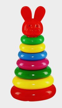 Układanka składa się z 9 plastikowych kółek o różnych wielkościach i kolorach. Zabawa układanką sprzyja rozwojowi koordynacji ruchowo-wzrokowej oraz zdolności manualnych dziecka. Wiek: 1+