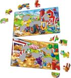 Średniej wielkości układanki, każda z 16 elementami. Wycinane w specjalny sposób dla najlepszej zabawy. Elementy układanek mają kształty pasujące do tematu obrazka. Dostępne są dwie układanki (wysyłane losowo).