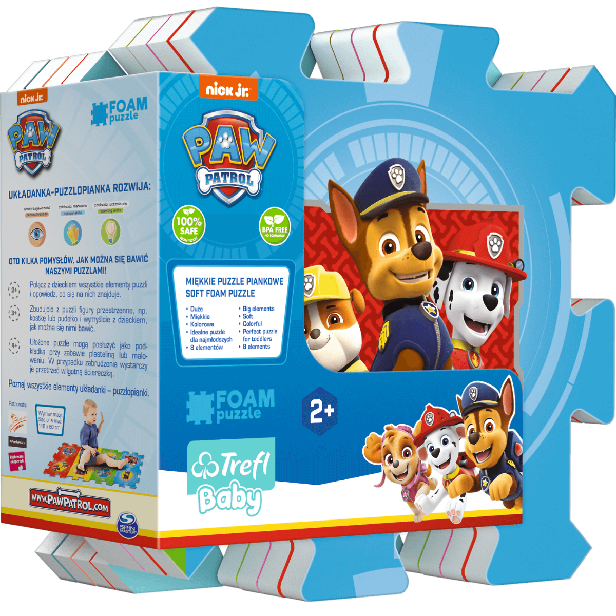 Puzzle piankowe od firmy Trefl wykonane są z miękkiej pianki. Puzzle są duże, dzięki czemu dziecko nie będzie miało problemu, aby połączyć ze sobą elementy. Przedstawiają bohaterów bajki Psi Patrol. Jest to fantastyczna i bezpieczna zabawka dla małych fanów bajki.