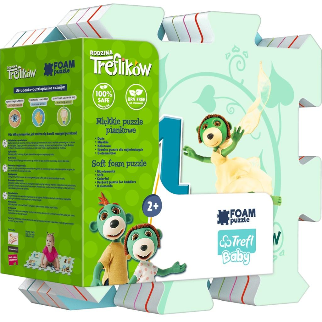 Puzzlopianka z linii produktów na licencji ""Rodzina Treflików"" - animowanego serialu dla dzieci. W opakowaniu znajduje się 8 dużych, kolorowych, miękkich elementów. Układanka - puzzlopianka uczy: spostrzegawczości, rozpoznawania kolorów i kształtów, budowania figur przestrzennych, zabawy z wyobraźnią. ""Rodzina Treflików"" to polska produkcja, tworzona metodą poklatkową w gdyńskim Studio Trefl. Serial jest emitowany w stacjach telewizyjnych w kraju i za granicą. W związku z rosnącą popularnością bajki seria produktów jest stale rozszerzana o nowe propozycje.