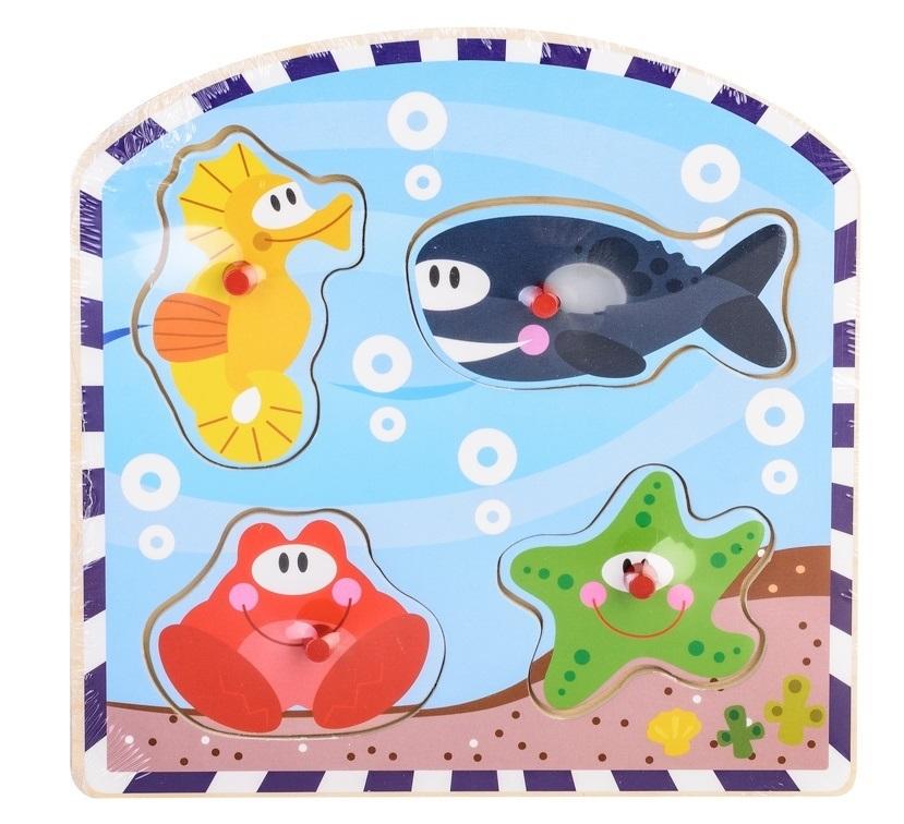 Układanka drewniana na dzieci, rozwija spostrzegawczość i koordynację wzrokowo-ruchową. Puzzle z uchwytami uławiającymi ich przenoszenie. Produkt przeznaczony dla dzieci powyżej 18 miesiąca życia, posiada certyfikat CE