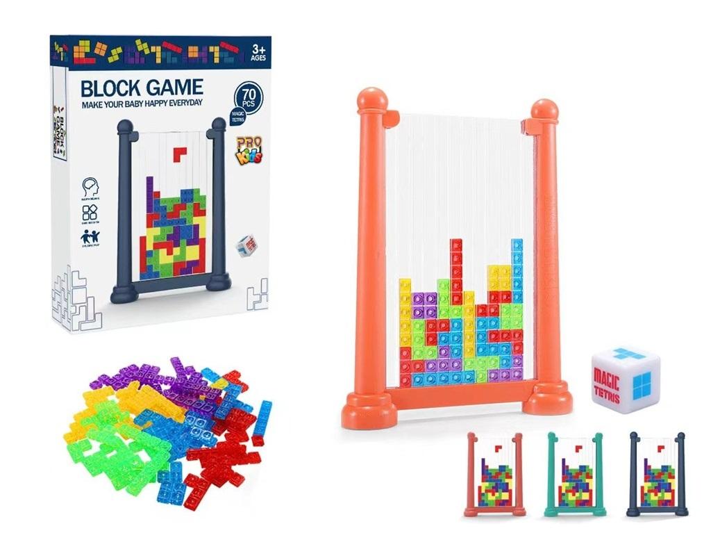 Gra "Układanka Wieża z Bloków" to barwna zabawka edukacyjna, która łączy kreatywność i logiczne myślenie. Zestaw zawiera 70 kolorowych, przezroczystych bloków w różnych kształtach, które można układać na dołączonej plastikowej podstawie w formie pionowej planszy. Zadaniem graczy jest tworzenie pełnych linii.
