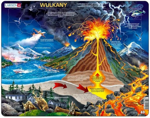 Ta łamigłówka przedstawia bardzo ilustracyjny obraz erupcji wulkanu, podczas gdy krople lawy uderzają w góry i wpadają do morza. Ptaki fruwają nerwowo po niebie, podczas gdy helikoptery i samoloty desperacko próbują ugasić pożary. Błyskawice uderzają w niebo spowodowane przez naładowany elektrycznie popiół. Zwierzęta uciekają przed katastrofą, podczas gdy stopiona skała spływa. Ta łamigłówka składa się z 70 niestandardowych kawałków i najlepiej nadaje się dla nieco starszych dzieci, które żywo interesują się nauką i wulkanami.