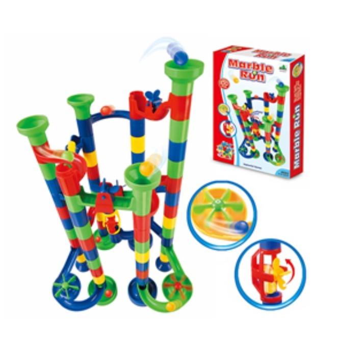 W ZESTAWIE: 100 ELEMENTÓW DO BUDOWY ZJEŻDŻALNI, PIŁECZKI, WYM. OPK: 31 X 47 X 7 CM., 4+