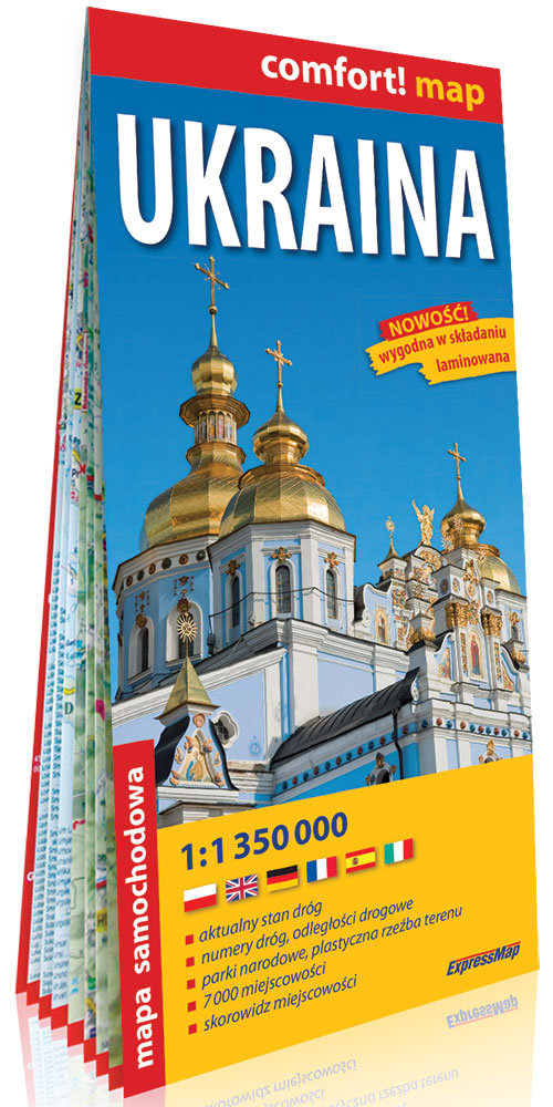 Z mapą samochodową Ukrainy podróż od Lwowa po Donieck będzie czystą przyjemnością. Mapa zawiera aktualne informacje drogowe, jest też całościowo pokryta laminatem, wyjątkowo trwała, wodoodporna i łatwa w składaniu.