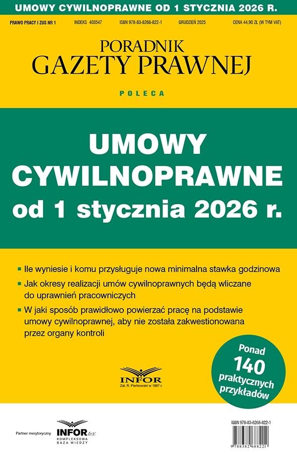 W poradniku "Umowy cywilnoprawne od 1 stycznia 2026 r." Czytelnik znajdzie m.in. odpowiedzi na pytania: