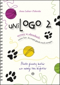Jest to druga część serii uniLOGO adresowanej do logopedów, terapeutów oraz nauczycieli. UniLOGO 2 może być wykorzystywane niezależnie lub jako uzupełnienie uniLOGO 1, które swoim zakresem obejmuje pierwsze etapy zajęć logopedycznych. W drugiej części opracowane zostały głoski trzech szeregów: syczącego, szumiącego i ciszącego. Całość zawiera 380 wyrazów w obrazkach, 167 kart pracy, 200 zagadek, 26 wierszyków i 6 opowiadań wierszem. WYRAZY W OBRAZKACH (teczka) – zestaw kart (380 obrazków na 38 kartach). Karty są przygotowane tak, by po pocięciu na jednej stronie znajdował się obrazek, a na drugiej podpisy do niego. Karty można też powielić tak, by obrazki i podpisy były osobno. Karty mogą być wykorzystane do zabaw przedstawionych w przewodniku uniLOGO 1. Mogą też stanowić ilustrację do tekstów (zagadek, opowiadań) zamieszczonych w zeszytach. Logopeda może na ich podstawie tworzyć własne ćwiczenia. Materiał tu zebrany, został uporządkowany zgodnie z kolejnością wprowadzania danych głosek. Pozwala on na dużą swobodę w zakresie doboru wyrazów i ćwiczeń prowadzonych z pacjentem.
