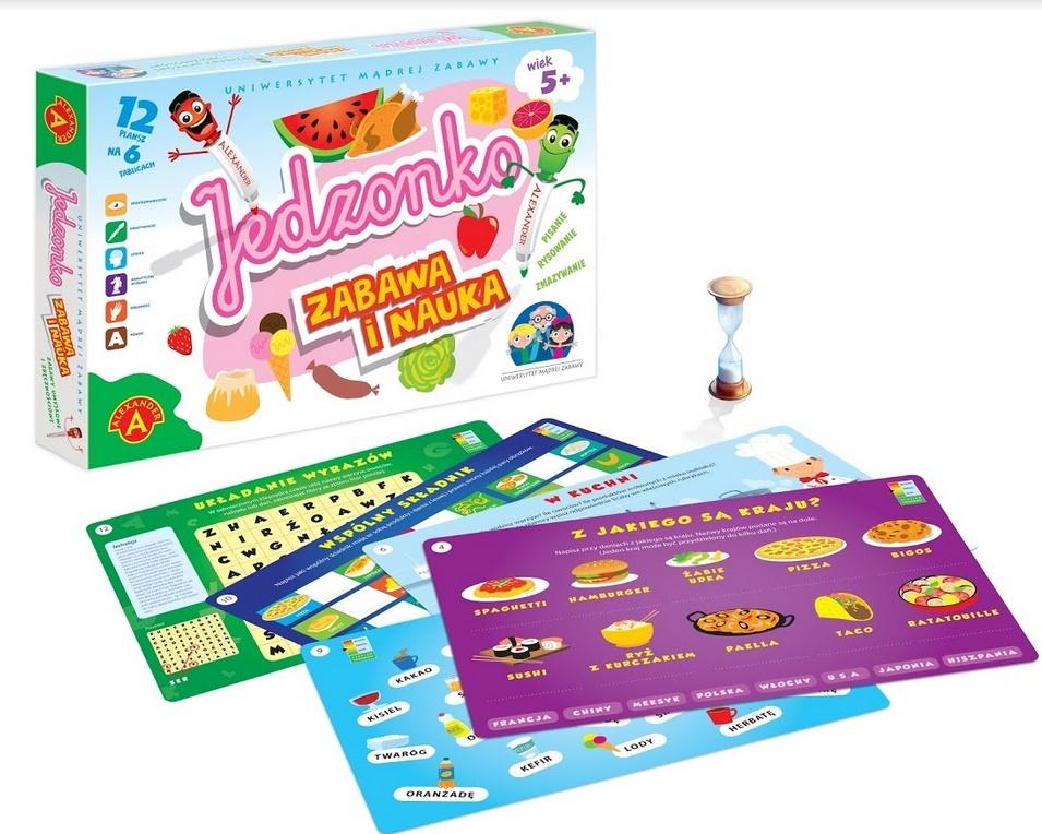 Zestaw gier i zabaw edukacyjnych na 12 planszach 6 dwustronnych tablic. Tematem każdej z nich jest żywność. Zabawa polega na rozwiazywaniu zadań, dzięki którym najmłodsi dowiadują się z czego powstają produkty żywnościowe i potrawy. Przekonują się, jakie jedzenie jest zdrowe, a jakie nie. Poprzez zabawę uczą się również samodzielnego myślenia, spostrzegawczości i pisania, rozwijają kreatywność i zręczność manualną. W trakcie zabaw rysują lub piszą na planszach znajdującymi się w zestawie pisakami. Każda plansza pokryta jest folią, dzięki czemu litery i rysunki można łatwo zetrzeć, a plansze wykorzystywać wielokrotnie.