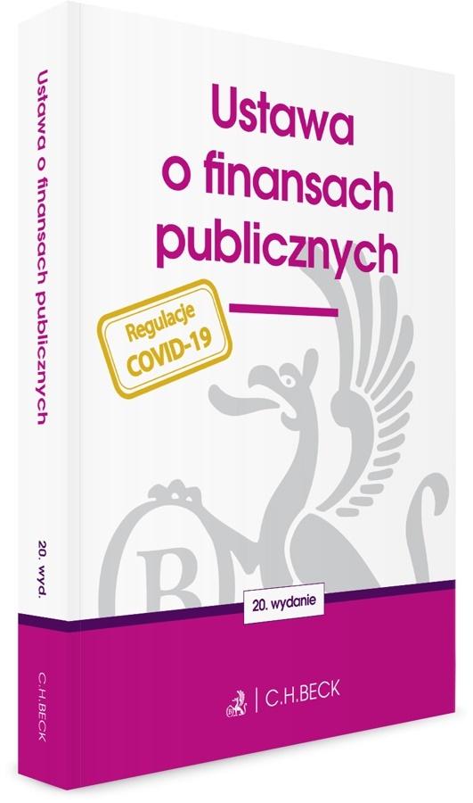 Stan prawny: 1 września 2020 r. Podwójnym stanem prawnym oznaczono treść artykułów, które wchodzą w życie: 29.2.2020 r. – Ustawa z 23.01.2020 r. o zmianie ustawy o działaniach administracji rządowej oraz niektórych innych ustaw (Dz.U. z 2020 r. poz. 284) 8.3.2020 r. – Ustawa z 02.03.2020 r. o szczególnych rozwiązaniach związanych z zapobieganiem, przeciwdziałaniem i zwalczaniem COVID-19, innych chorób zakaźnych oraz wywołanych nimi sytuacji kryzysowych (Dz.U. z 2020 r. poz. 374) 31.3.2020 r. – Ustawa z 31.03.2020 r. o zmianie ustawy o szczególnych rozwiązaniach związanych z zapobieganiem, przeciwdziałaniem i zwalczaniem COVID-19, innych chorób zakaźnych oraz wywołanych nimi sytuacji kryzysowych oraz niektórych innych ustaw (Dz.U. z 2020 r. poz. 568) 18.4.2020 r. – Ustawa z 16.04.2020 r. o szczególnych instrumentach wsparcia w związku z rozprzestrzenianiem się wirusa SARS-CoV-2 (Dz.U. z 2020 r. poz. 695) 3.7.2020 r. – Ustawa z 28.05.2020 r. o zmianie ustawy o finansach publicznych (Dz.U. z 2020 r. poz. 1175) 1.1.2021 r. – Przepisy wprowadzające ustawę z 11.09.2019 r. – Prawo zamówień publicznych (Dz.U. z 2019 r. poz. 2020) 1.1.2021 r. – Ustawa z 31.07.2019 r. o świadczeniu uzupełniającym dla osób niezdolnych do samodzielnej egzystencji (Dz.U. z 2019 r. poz. 1622) Wyciąg z ustawy o szczególnych rozwiązaniach związanych z zapobieganiem, przeciwdziałaniem i zwalczaniem COVID-19, innych chorób zakaźnych oraz wywołanych nimi sytuacji kryzysowych (Dz.U. z 2020 r. poz. 374) Książka zawiera: Tekst ustawy Ustawa o finansach publicznych, Tekst ustawy Ustawa Przepisy wprowadzające ustawę o finansach publicznych, Indeks rzeczowy. Seria "Twoje Prawo"zawiera: Boldowanie najnowszych zmian, Przypisy od Redakcji, Czytelne hasła i teksty, Indeks rzeczowy.