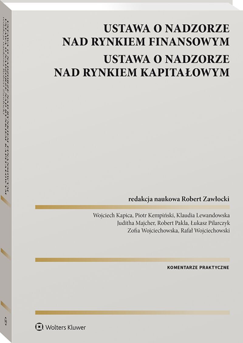 Komentarz jest kompleksowym opracowaniem najważniejszych przepisów związanych z nadzorem nad rynkiem finansowym w Polsce. Obejmuje on dwa akty prawne, wzajemnie się przenikające i uzupełniające: ustawę o nadzorze nad rynkiem finansowym oraz ustawę o nadzorze nad rynkiem kapitałowym, których najważniejszą funkcją jest normatywne określenie uprawnień i procedur przysługujących organom nadzoru. Autorzy - osoby o bogatym dorobku naukowym oraz praktyce w swojej dziedzinie - szczególną uwagę poświęcili zagadnieniom funkcji i zadań Komisji Nadzoru Finansowego w systemie prawa, procedurom jej działania w zakresie nadzoru nad instytucjami finansowymi oraz jej szczególnej roli w zapewnieniu bezpieczeństwa nad rynkiem finansowym. Niezależnie od analizy podstawowych, ustrojowych przepisów, omówili także procedury związane z postępowaniem wyjaśniającym, postępowaniem układowym, wpisem na listę ostrzeżeń publicznych oraz dotyczące sfery sankcyjnej. W opracowaniu wskazano na szereg problemów praktycznych w stosowaniu przepisów, odwołując się do aktualnego orzecznictwa oraz poglądów doktryny. Uwzględniono najnowszy stan prawny, m.in. nowelizacje ustaw dokonane: ustawą z 16.08.2023 r. o zmianie niektórych ustaw w związku z zapewnieniem rozwoju rynku finansowego oraz ochrony inwestorów na tym rynku (Dz.U. poz. 1723), a także ustawą z 20.12.2024 r. o podmiotach obsługujących kredyty i nabywcach kredytów (Dz.U. z 2025 r. poz. 146).