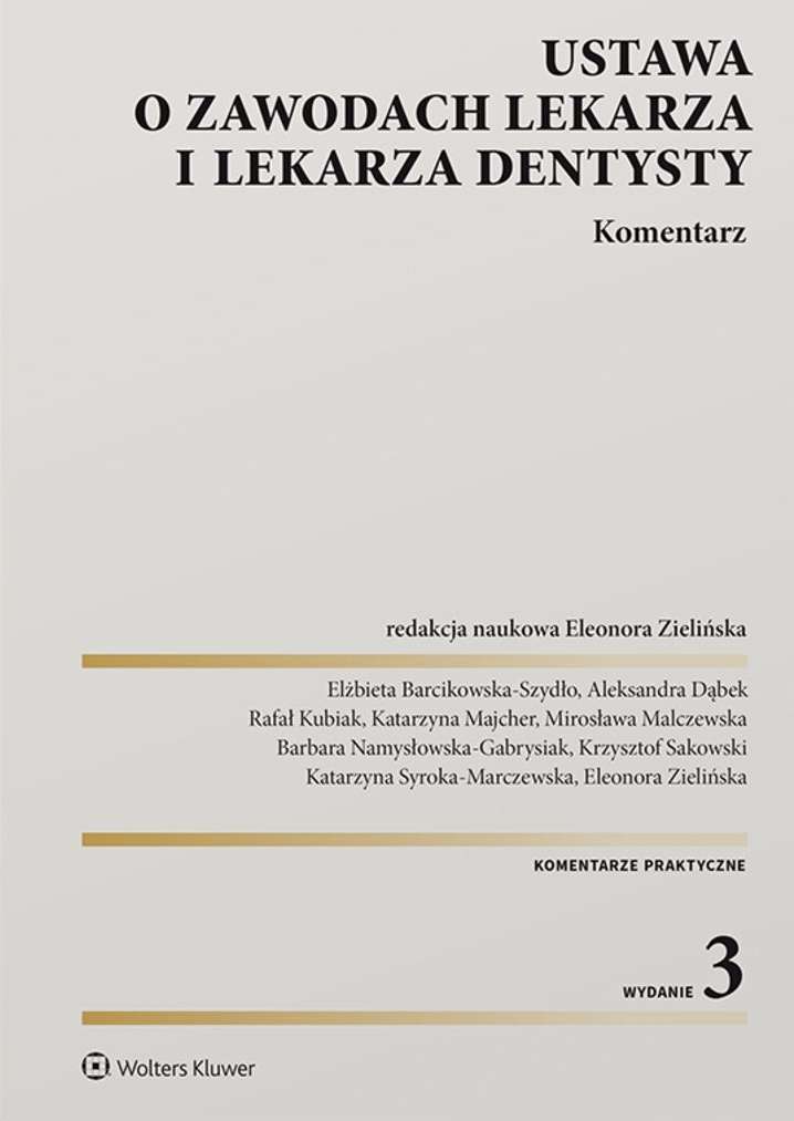 W komentarzu w przystępny sposób omówiono przepisy dotyczące zawodu lekarza i lekarza dentysty – zasady i standardy jego wykonywania oraz powinności i obowiązki związane z udzielaniem świadczeń zdrowotnych. Przedstawiono wymagania i warunki uzyskiwania prawa wykonywania zawodu lekarza oraz sytuacje powodujące jego czasowe zawieszenie lub utratę. Ponadto omówiono problematykę dopuszczenia do wykonywania w Polsce zawodu lekarza tych osób, które ukończyły studia medyczne za granicą, nie tylko w innych krajach Unii Europejskiej, lecz także w tzw. państwach trzecich. Wyjaśniono przepisy prawa unijnego związane z wzajemnym uznawaniem kwalifikacji oraz swobodnym przepływem usług medycznych. W najnowszym wydaniu omówiono zmiany systemu kształcenia lekarzy dotyczące zasad przeprowadzania Lekarskiego Egzaminu Końcowego i Lekarsko-Dentystycznego Egzaminu Końcowego, a także kształcenia podyplomowego lekarzy w postaci podyplomowego stażu, szkolenia specjalizacyjnego, Państwowego Egzaminu Specjalizacyjnego oraz innych form profesjonalnego rozwoju. Uwzględniono również nowe regulacje dotyczące zasad przeprowadzania eksperymentów medycznych na ludziach, związane z funkcjonowaniem opieki zdrowotnej podczas pandemii COVID-19 i dopuszczeniem ukraińskiego personelu medycznego do wykonywania zawodu w Polsce. Komentarz jest dziełem zarówno wykładowców akademickich, jak i prawników praktyków – wybitnych znawców prawa medycznego w Polsce. Większość autorów zajmuje też własne stanowisko w kwestiach wątpliwych lub spornych, zwykle szeroko i przekonująco je uzasadniając. Publikacja jest przeznaczona dla lekarzy i lekarzy dentystów, przyszłych adeptów tych zawodów, organów samorządu zawodowego lekarzy, a także pacjentów. Będzie również ważnym źródłem informacji dla prawników praktyków: sędziów, adwokatów, radców prawnych i prokuratorów w sprawach dotyczących problematyki lekarskiej i medycznej.