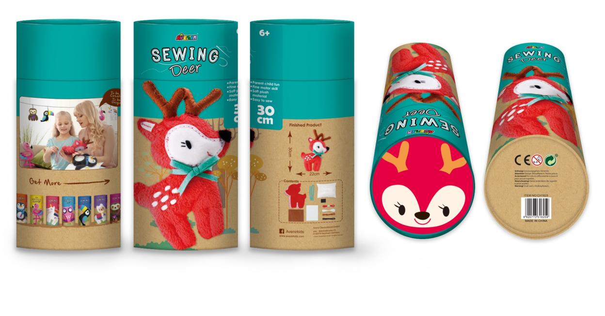 Avenir Sewing to wyjątkowa seria maskotek do samodzielnego uszycia. Maskotka Jeleń ma około 25 cm wysokości. Jest bardzo miła w dotyku i mięciutka. W zestawie są wszystkie niezbędne rzeczy: przygotowany do zszycia materiał, wypełnienie, nici (mulina), plastikowa bezpieczna igła. Już przedszkolak poradzi sobie z samodzielnym uszyciem sobie maskotki dzięki bardzo przejrzystej obrazkowej instrukcji. Avenir Sewing to seria, dzięki której czas spędzony z dzieckiem na kreatywnej zabawie zaowocuje nie tylko fantastycznymi wspomnieniami i wzmocnieniem więzi, ale także... nową ukochaną zabawką! Dla dzieci powyżej 6. roku życia.