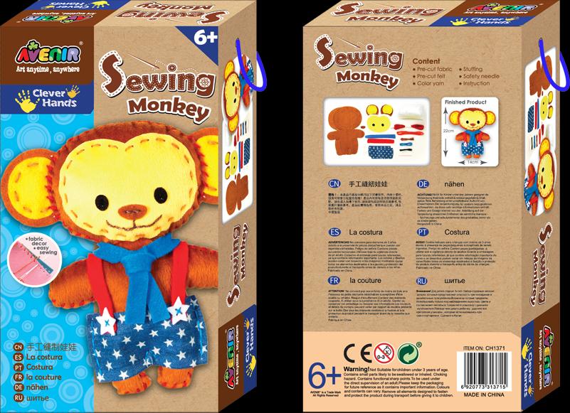 Avenir Sewing to wyjątkowa seria maskotek do samodzielnego uszycia. Maskotka Małpka ma około 23 cm wysokości. Jest bardzo miła w dotyku i mięciutka, z przyjemngo w dotyku filcu. W zestawie są wszystkie niezbędne rzeczy: przygotowany do zszycia materiał, wypełnienie, nici (mulina), plastikowa bezpieczna igła. Już przedszkolak poradzi sobie z samodzielnym uszyciem sobie maskotki dzięki bardzo przejrzystej obrazkowej instrukcji. Avenir Sewing to seria, dzięki której czas spędzony z dzieckiem na kreatywnej zabawie zaowocuje nie tylko fantastycznymi wspomnieniami i wzmocnieniem więzi, ale także... nową ukochaną zabawką! Dla dzieci powyżej 6. roku życia.