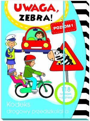 Teczki Uwaga, zebra! przygotowują dzieci do bezpiecznego poruszania się po drodze, ulicy czy chodniku.Zestaw zawiera dwa zeszyty aktywizujące z naklejkami: Kodeks drogowy przedszkolaka oraz Księgę pojazdów, a także dwustronna planszę, której pierwsza część służy do aranżowania i omawiania różnych sytuacji na drodze, a druga to gra planszowa związana z zasadami ruchu drogowego. Uzupełnieniem kompletu są wycinanki postaci, pojazdów czy sygnalizatorów świetlnych.Zadania skierowane są do młodszych przedszkolaków.