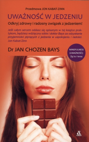 Na podstawie najnowszych badań i własnej praktyki Jan Chozen Bays pokazuje, jak uważność może zmienić nasz stosunek do jedzenia, jego rolę w naszym życiu oraz pomóc rozwiązać wiele problemów, związanych nie tylko z jedzeniem. Uważność w jedzeniu to sztuka pełnego skupienia na procesie jedzenia: na smakach, zapachach, myślach i uczuciach, które budzą się podczas posiłku i są z nim związane. Dzięki uważności można (na nowo) odkryć, że jedzenie to nie tylko odżywianie organizmu, ale także wielka przyjemność i satysfakcja. Niezależnie od tego, czy masz nadwagę, cierpisz na zaburzenia układu pokarmowego czy chcesz po prostu czerpać więcej radości z życia, ta książka ci pomoże. Dowiesz się jak: • słuchać mądrości swojego ciała, by wiedzieć, co, kiedy i jak dużo jeść • jeść mniej i czuć się w pełni nasyconym • rozpoznawać swoje zwyczaje i nawyki związane z jedzeniem • lepiej rozumieć swoje problemy z dietą • odkrywać, co naprawdę chcesz zjeść