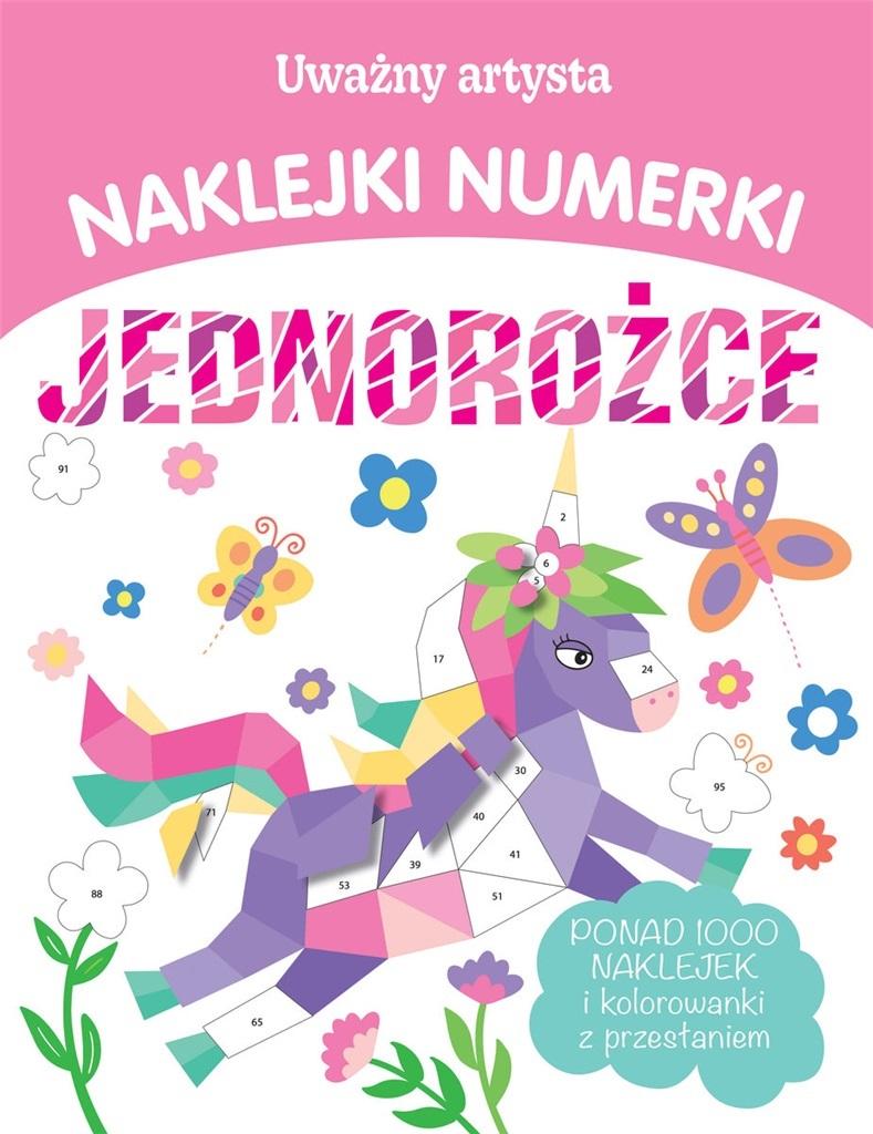 Okładka książki Uważny artysta. Naklejki numerki. Jednorożce