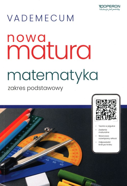 Vademecum – zbiór najważniejszych wiadomości niezbędnych na egzaminie maturalnym – pozwalający na naukę w takim rytmie, jakiego potrzebujesz. Zawiera: kompendium wiedzy podzielone na działy takie jak w repetytorium, podane syntetycznie jako podsumowanie całego cyklu nauki; często w formie wzorów, twierdzeń i przykładów do nich definicje i pojęcia wyróżnione w każdym dziale kolorową czcionką, co ułatwia ich zapamiętywanie utrwalenie wiedzy z danego działu matematyki znajduje się na jego końcu i ma postać grafu wybrane wzory matematyczne – takie same, jak te, które otrzymasz na maturze; dzięki temu oswoisz się z ich wyglądem, treściami i korzystaniem z nich podczas rozwiązywania zadań