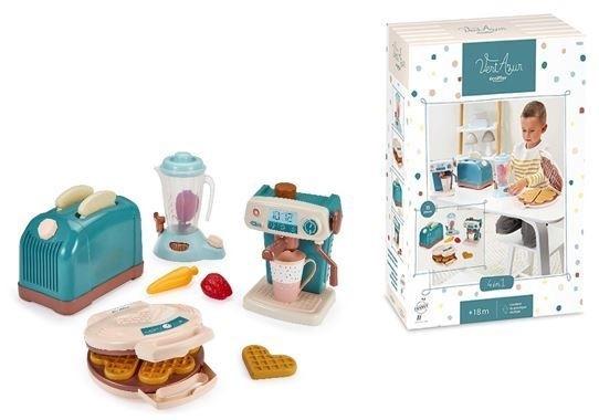 Zestaw małego AGD, w tym ekspres do kawy, blender kielichowy, gofrownica i toster. Łącznie 15 akcesoriów..