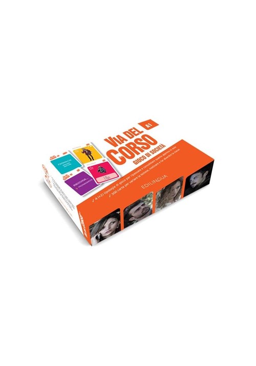 Il Gioco di societe di Via del Corso A1 a il primo gioco abbinato a un corso di lingua per adulti e giovani adulti. Mettendo assieme divertimento e sfida cognitiva e facendo leva sulla motivazione intrinseca, il gioco mira a far riutilizzare agli studenti i contenuti lessicali, comunicativi, culturali e grammaticali del corso. I 6 giochi proposti trasformano l’esperienza del gioco in apprendimento significativo: gli studenti sono automotivati, appassionati dalla sfida, protagonisti e autonomi nella valutazione. Il gioco di societe di Via del Corso A1 risulta quindi un’ottima risorsa per motivare e coinvolgere la classe. Nella scatola troverete 300 carte (6 mazzi da 50) per giocare a Tabe, Indovina, Ciak!, Mix, Artisti si nasce!, Improvvisiamo; 4 carte guida per far orientare velocemente gli studenti, le istruzioni per voi insegnanti e un portacarte pieghevole. Per saperne di pie sfogliate gli allegati a destra.