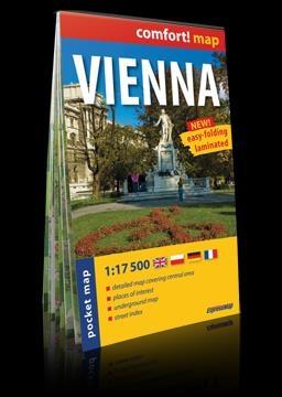 Vienna laminowany plan miasta 1:17 500 – mapa kieszonkowa format: 67 x 32 cm, po złożeniu: 9,6 x 16 cm - dwustronnie laminowany, wygodny w składaniu kieszonkowy plan interesujących dla turysty, centralnych dzielnic miasta - szczegółowa skala 1:17 500 (1 cm – 175 m) - bogata treść turystyczna, m.in.: zabytki, muzea, hotele i inne istotne obiekty - budynki użyteczności publicznej, centra handlowe - linie i stacje metra oraz kolei miejskiej, linie tramwajowe - szczegółowy plan centrum w skali 1:13 500 (1 cm – 135 m) - schemat metra i kolei miejskiej - skorowidz ulic