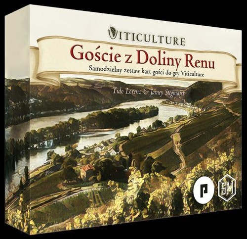 Goście z Doliny Renu – dodatek do Viticulture Do rozgrywki niezbędna jest gra Viticulture! Masz nowych gości! Dodatek Goście z Doliny Renu wprowadza do Viticulture zestaw 80 nowych kart gości, którzy mniej skupiają się na zdobywaniu punktów zwycięstwa a zdecydowanie bardziej na winiarstwie. Te karty mają odmienne rewersy, ponieważ należy ich używać samodzielnie, bez kart z gry podstawowej czy innych dodatków. Dwie karty gości letnich (Emerytowany generał, Konstruktor) i dwie karty gości zimowych (Arystokraci, Lobbysta) zostały specjalnie zaprojektowane do rozgrywki z dodatkiem Toskania. Sześć kart jest identycznych jak w zestawie podstawowym. Są to dwie karty letnich gości (Bankier, Wykonawca) i cztery karty gości zimowych (Fachowiec, Sommelier bez dyplomu, Zymolog, Doświadczony żniwiarz). Zawartość: • 40 kart gości letnich - (44 x 67 mm) (w tym 2 karty dla dodatku Toskania) • 40 kart gości zimowych - (44 x 67 mm) (w tym 2 karty dla dodatku Toskania) Autorzy: Jamey Stegmaier oraz Tido Lorenz Liczba graczy: 1 - 6 graczy Wiek graczy: 13+ Czas gry: 45 - 90 minut