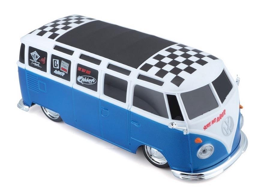 Volkswagen Van Samba w kolorze niebieskim to model auta w skali 1:24 z funkcją zdalnego