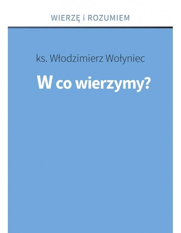 W co wierzymy?, czyli druga pozycja w serii, porusza kwestię podstaw wiary katolickiej. Ksiądz prof. Włodzimierz Wołyniec tłumaczy, czym jest objawienie Boże, czyli skąd pochodzą treści naszej wiary, i w jaki sposób wiara ta jest odpowiedzią na nie. Następnie przybliża samo pojęcie wyznania wiary i omawia artykuł po artykule treść Symbolu nicejsko-konstantynopolitańskiego, czyli wyznania wiary składanego w trakcie Eucharystii. Pomaga to w bardziej świadomej refleksji nad tym, w co wierzymy, i jak te prawdy wiary przekładają się na nasze codzienne wybory.