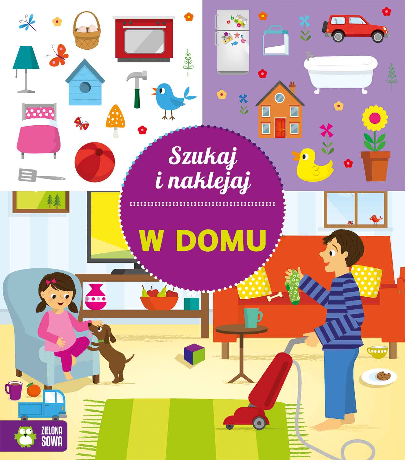 Filiżanka, gumowa kaczuszka, globus, śrubokręt i wiele innych rzeczy z kolejnych domowych pomieszczeń sprawdź, czy znajdziesz wszystkie przedmioty na obrazku! Książeczki z kolorowymi ilustracjami i naklejkami. Dziecko poznaje pojazdy, zwierzęta, życie na wsi i przeróżne sprzęty, które można zobaczyć w domu. Na każdej stronie jest mnóstwo elementów do odszukania na dużej ilustracji. Dziecko odpowiada na zamieszczone obok niej pytania i przykleja naklejki we właściwych miejscach.