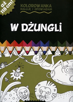 Aż 118 cm świetnej zabawy! Alojzy Sztaluga, znany malarz, uwielbia podróżować. Niestety, jest wyjątkowo roztargniony… Tym razem wybrał się na wyprawę do dżungli, aby uwiecznić życie dzikich zwierząt. Wziął ze sobą namiot, ponton, lornetkę, świeczkę, igłę z nitką, konserwę, a nawet herbatę w torebkach. A kiedy już wszystko naszkicował, przypomniał sobie, że nie wziął kredek… Kolorowanki z pomysłowymi poleceniami ćwiczą spostrzegawczość, uczą rysować, rozwijają wyobraźnię, ale przede wszystkim wywołują w dzieciach naturalną chęć samodzielnego tworzenia. Co wyróżnia serię "Maluję i opowiadam" od typowych kolorowanek? Różni je wielkość (mają ponad metr długości!). Mimo że są duże, można je składać, dlatego mieszczą się na każdym stole. Mają kolorowe tło, dzięki czemu wszystkie detale są lepiej wyróżnione. Zwierają pomysłowe dodatki – opowiadania i ćwiczenia – które pomagają rozwijać umysł, wyobraźnię i bystre oko.