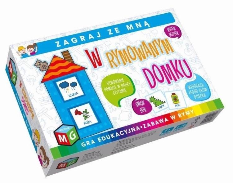 Gra dydaktyczna, która w przyjemny i intrygujący dla dziecka sposób pomaga kształtować umiejętność tworzenia rymów. Miłe dla oka rysunki oraz kolorystyka, skupiają uwagę graczy na zabawie w poszukiwanie rymujących się par wyrazów. Gra wzbogaca słownik dziecka, rozwija umiejętność czytania, umozliwia rozpoznawanie i identyfikowanie kolorów, a przy tym uczy cierpliwości oraz konieczności respektowania ustalonych reguł. Celem gry jest prawidłowe ustalenie wszystkich rymujących się ze sobą par wyrazów. Zawartość pudełka: plansze domki -8 szt, kolorowe suwaki- 16 szt, instrukcja. Wiek graczy: 5+ Liczba graczy: 2-16