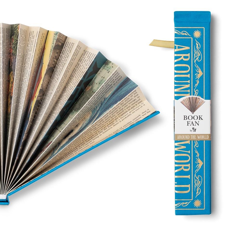 Book Fan to oryginalny wachlarz inspirowany wyglądem książki - idealny gadżet dla miłośników czytania. Po zamknięciu wygląda jak fragment eleganckiej książki z ozdobną okładką, a po rozłożeniu zamienia się w praktyczny papierowy wachlarz, który daje przyjemne ochłodzenie w ciepłe dni. Wachlarz wykonany jest z wysokiej jakości papieru z dekoracyjnymi detalami i stylistyką inspirowaną klasycznymi ilustracjami. Dostępny jest w kilku tematycznych wzorach - m.in. podróżniczych, artystycznych czy botanicznych - dzięki czemu stanowi zarówno praktyczny dodatek, jak i ciekawy prezent dla fanów książek.
