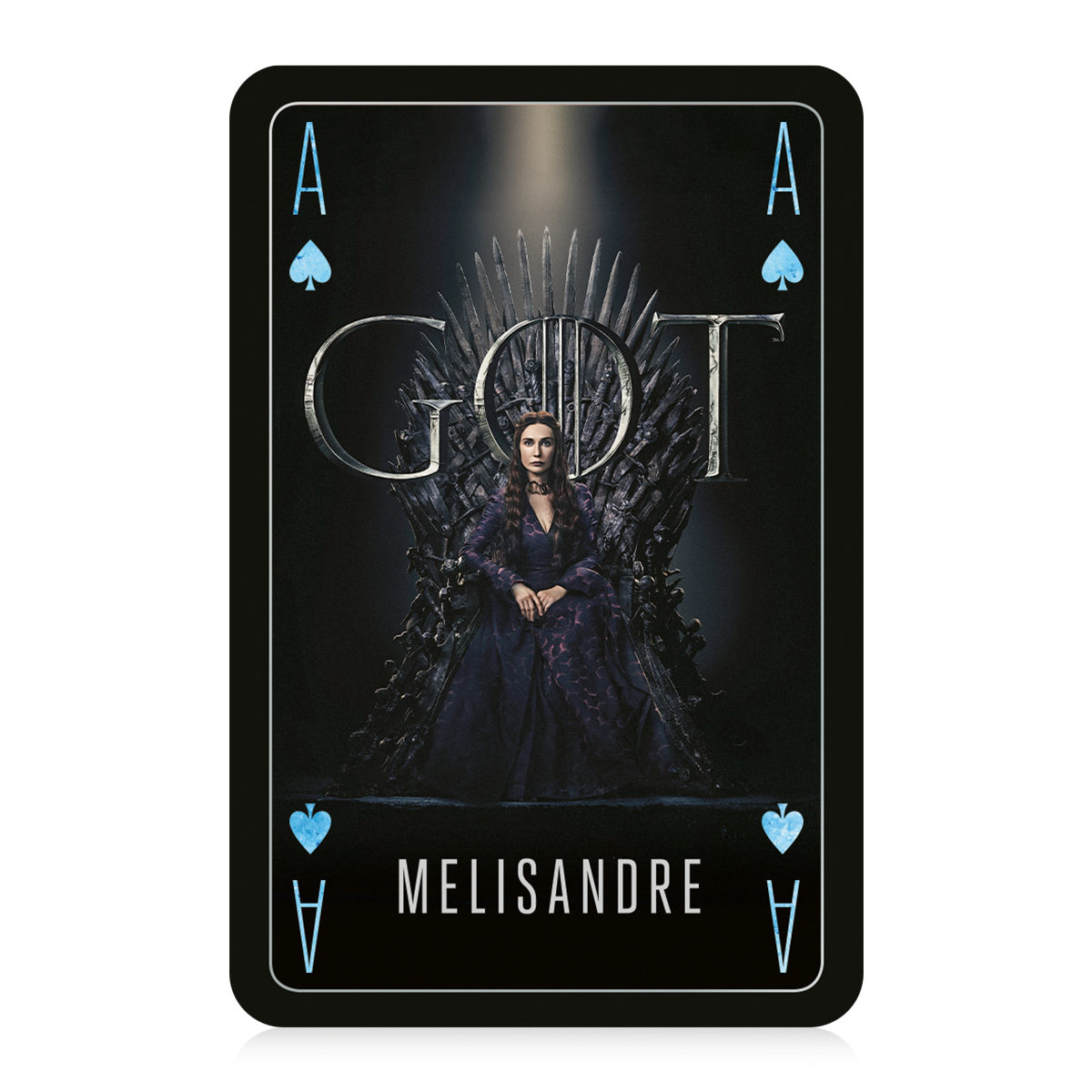 WADDINGTONS NO.1 GAME OF THRONES Makao, remik a może oczko? Rozegraj partię elegancką talią kart WADDINGTONS NO.1 GAME OF THRONES. Karty Waddingtons no. 1 wyróżniają się nie tylko designem, ale i wysoką jakością wykonania. Talia zachowuje swój nienaganny kształt nawet po wielu burzliwych rozgrywkach! Niezawodność materiałów gwarantuje brytyjska marka Waddingtons, obecna na rynku od 1905 roku. Specyfikacja: liczba graczy: 1+ wiek: 4+ czas gry: 15 minut Uwaga! Nieodpowiednie dla dzieci w wieku poniżej 3 lat.