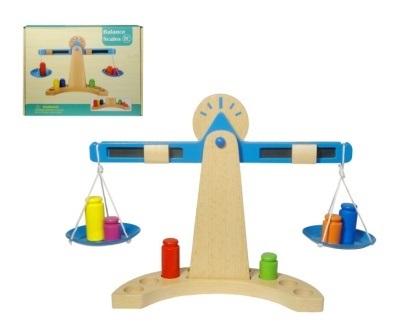 Zabawka edukacyjna drewniana waga dla dzieci. Produkt nauczy dzieci logicznego myślenia gdyż obydwie strony wagi muszą się równoważyć. Produkt zapakowany w kartonowe opakowanie. Zabawka dla dzieci od 3 lat.