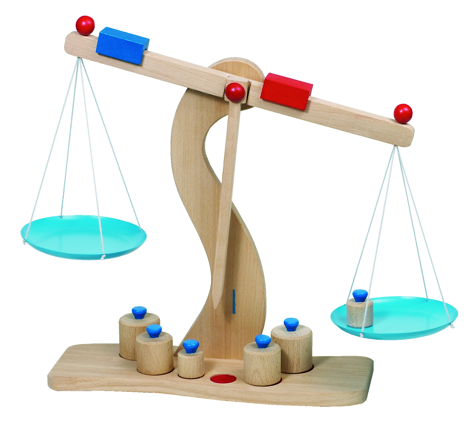 Oryginalnie zaprojektowana drewniana waga sklepowa z metalowymi szalkami i 6 odważnikami. Znakomicie sprawdzi się w dziecięcej zabawie w sklep. 3+