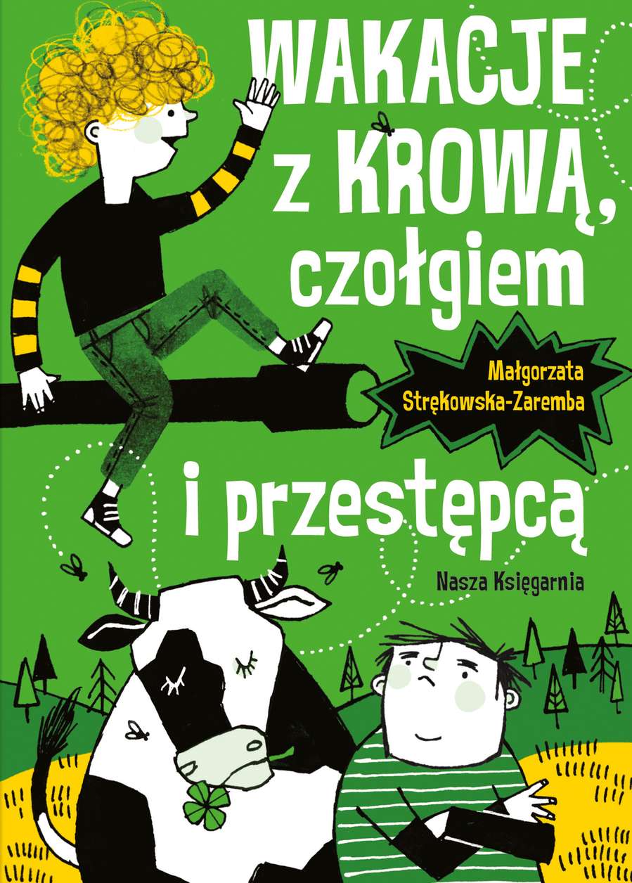 Kontynuacja przygód bohaterów „Berego, gangstera i góry kłopotów”. Tym razem najlepsi przyjaciele bardzo się starają, aby nie spędzić wakacji na wsi… Uważają, że zanudzą się tam na śmierć. Niestety, wyjazd dochodzi do skutku. Jednak wszystko wskazuje na to, że nie będzie taki nudny. Za chłopcami podąża przestępca! „Wakacje z krową, czołgiem i przestępcą” opowiadają z humorem o przygodach Kuby i Wojtka, ale podejmują także wiele ważnych tematów takich jak: problemy dzieci z rozbitych rodzin, więź łącząca wnuka i dziadka czy lęk przed odrzuceniem. Małgorzata Strękowska-Zaremba – pisarka, dziennikarka, członkini Stowarzyszenia Pisarzy Polskich, Polskiej Sekcji IBBY oraz Stowarzyszenia Wolnego Słowa. Publikowała opowiadania oraz teksty dziennikarskie w „Tygodniku Solidarność”, „Wiadomościach Kulturalnych”, „Magazynie Literackim”, „Bibule” – dodatku do „Rzeczpospolitej”, „Życiu”, „Wyspie”, „Nowym Dzienniku” nowojorskim piśmie dla polonii. Autorka książek dla dzieci oraz powieści, opowiadań, tekstów edukacyjnych w pismach dla dzieci i młodzieży: „Miś”, „Świerszczyk”, „Płomyczek”, „Bluszczyk”. Współscenarzystka pierwszych odcinków programu telewizyjnego dla dzieci i rodziców „Od słów do głów” emitowanego na antenie TVP1. Współautorka podręczników do nauczania zintegrowanego dla kl. 0–III z cyklu „Moje abc”, przewodników dla nauczycieli, książek edukacyjnych dla kl. IV–VI i gimnazjum. Laureatka wielu konkursów, m.in. w 2004 r. otrzymała Nagrodę Literacką im. Kornela Makuszyńskiego za książkę „Abecelki i duch Bursztynowego Domu”. Za książkę „Bery, gangster i góra kłopotów” w 2006 r. otrzymała wyróżnienie w konkursie Polskiej Sekcji IBBY, a w 2007 r. wyróżnienie Fundacji Świat Dziecka w konkursie Dziecięcy Bestseller Roku 2006, jak również nominację do Nagrody im. Kornela Makuszyńskiego oraz Małego Donga – nagrodę dziecięcego jury. W 2008 r. otrzymała wyróżnienie w konkursie Polskiej Sekcji IBBY Książka Roku 2008 za książkę „Złodzieje snów”. W 2009 r. za tę samą książkę, przyznano jej II Nagrodę w I Konkursie Literatury Dziecięcej im. Haliny Skrobiszewskiej, nagrodzona pozycja wpisana została na Listę Skarbów Muzeum Książki Dziecięcej. Monika Pollak – absolwentka Akademii Sztuk Pięknych w Gdańsku. Ilustruje książki dla dzieci oraz podręczniki szkolne. Zajmuje się również grafiką użytkową. Dotychczas współpracowała z Gdańskim Wydawnictwem Psychologicznym, Wydawnictwami Szkolnymi i Pedagogicznymi, Wydawnictwem Szkolnym PWN, wydawnictwem MAC Edukacja, Nową Erą, Siedmiorogiem, Magination Press oraz Naszą Księgarnią.