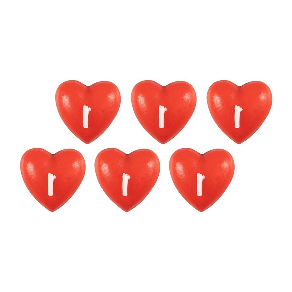 Zestaw 6 świec w kształcie serc w kolorze czerwonym. Idealne jako dekoracja na podkładce. Pasują na wiele okazji, takich jak walentynki, rocznice, ślub lub zaręczyny. Świeca o wymiarze 3 x 3 x 2 cm.