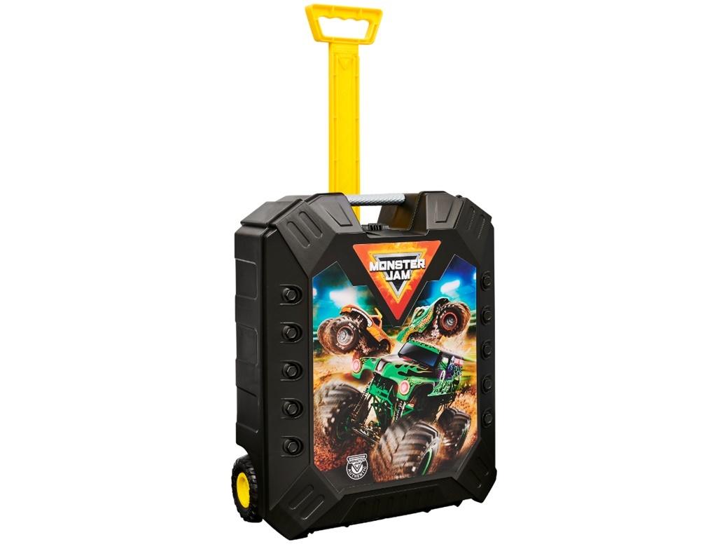 Zabierz swój ulubiony zestaw Monster Jam gdzie tylko chcesz w tej niezwykłej walizce! Znajdzie się w niej miejsce na aż 15 pojazdów Monster Jam w skali 1:64 oraz, w jej dolnej części, aż 3 kolejne ciężarówki lub Monster Dirt (sprzedawane oddzielnie). Walizka Monster Jam to idealne rozwiązania dla każdego, kto chce trzymać swoją kolekcję Monster Jam w bezpiecznym miejscu lub mieć ją zawsze przy sobie. Znajdzie się tam miejsce dla Grave Digger, Megalodon, El Toro Loco, Max-D oraz wielu innych maszyn. Powierzchnie walizki Monster Jam zdobią oryginalne grafiki z motywem niezawodnych kół BKT. Wejdź do akcji z tą niezwykłą walizką i baw się do woli!