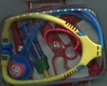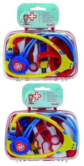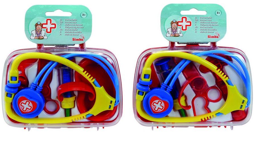 Akcesoria lekarskie w plastikowej walizce, wygodnej do przechowywania i przenoszenia zestawu. Zawartość: słuchawki lekarskie, strzykawka, nozyczki, pęseta. Zabawka dla dzieci od lat 3.