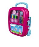 Trolley Świnka Peppa z akcesoriami do kolorowania. Zawartość: 6 markerów, 8 mini kredke, 2 ołówki, gumka, temperówka, arkusz naklejek A5, bloczek do kolorowania (20,00 x 10,00 cm)