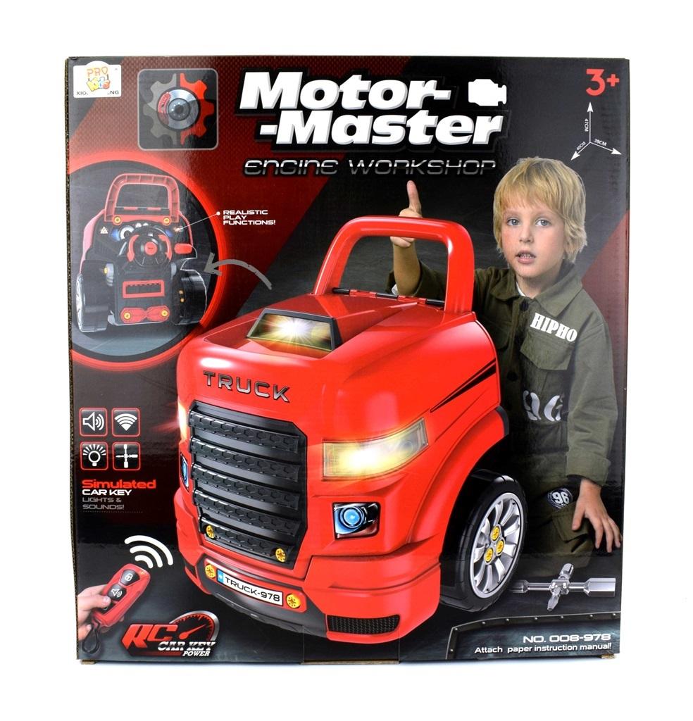 Warsztat samochodowy to ciekawa zabawka edukacyjna dla małego majsterkowicza. Mobilny warsztat w formie silnika samochodowego na kółkach pomaga poznać działanie samochodu.
