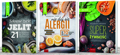 Promocja trzy książki w cenie dwóch!!! Komplet książek z przepisami na zdrowe i smaczne posiłki dla osób uczulonych na różne alergeny i cierpiących z powodu nietolerancji pokarmowych. Oprócz przepisów znajdziemy praktyczne wskazówki jakich produktów należy unikać oraz jak przygotowywać produkty, aby nie straciły swoich walorów zdrowotnych.