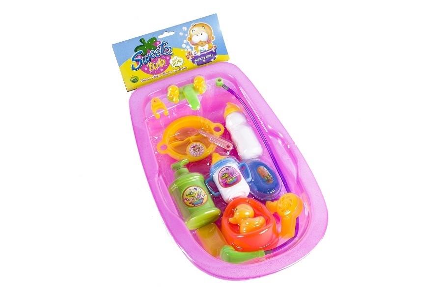 Wspaniała wanienka dla lalek wyposażona w kran i prysznic z bogatym zestawem akcesoriów. Proponowany zestaw spodoba się każdej małej opiekunce i może być przez nią bezpiecznie wykorzystywany w dowolnych sytuacjach zabawowych. Fioletowa kolorystyka zachęci do zabawy wszystkie małe mamy opiekujące się swoimi dzidziusiami.