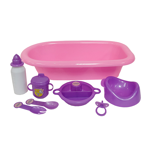 Wanienka do kąpieli dla lalek oraz akcesoria do zabawy .